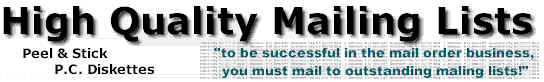 To be successful in the mail order business, you must mail to outstanding lists! We offer lists in Peel and Stick Labels and on disk. |